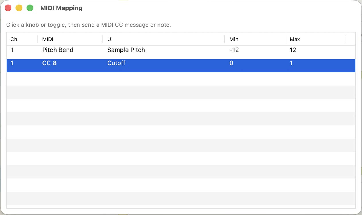 In the MIDI Mapping window, you can assign MIDI controller knobs/keys, pitch bend, and more to Ambient Engine knobs and toggles. (Supported in v1.1)